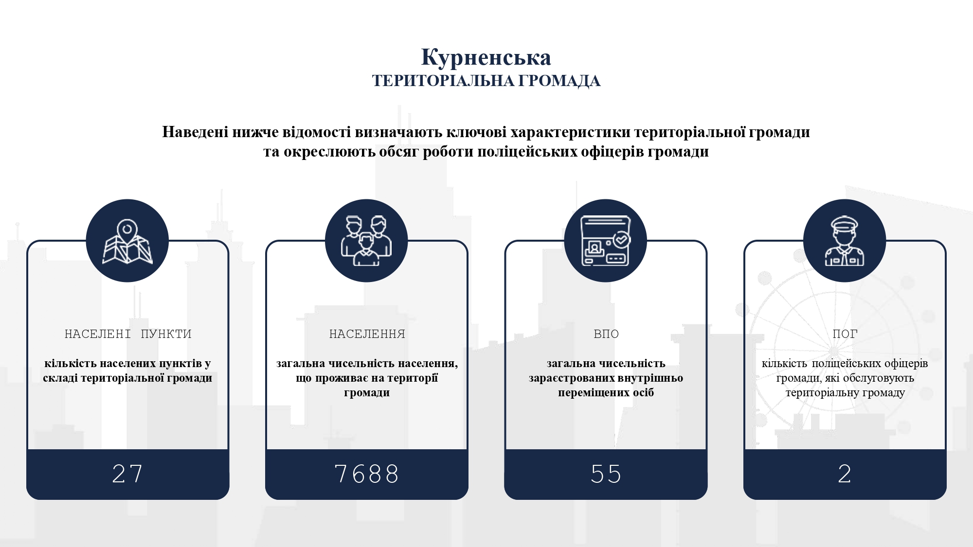 Кількість населених пунктів у складі територіальної громади - 27